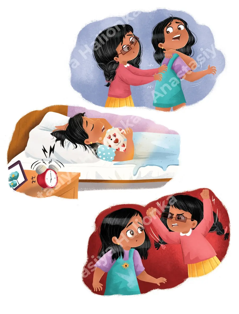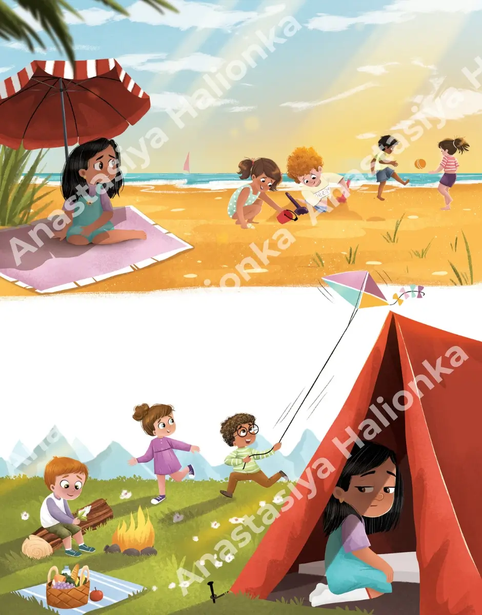 In the «Illustrated Books» section you will find a list of children’s books with my illustrations. Click on a particular book to see more illustrations included. There you can also find a story of creating illustrations for this book, its description and links to the book. This way, you can see how I bring authors’ stories to life on different stages of a project. Enjoy watching 😊